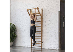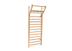 Wall bars are a truly classic piece of sports equipment- there's hardly a gym without one! The fine woods used to manufacture NOHrD WallBars, along with its curved silhouette, present a high-quality piece of furniture that will blend in effortlessly to your home interior. Available in ash, oak, cherry, and walnut woods. The safety cords on the built-in side arm ensure safe training and retract automatically when folded up.